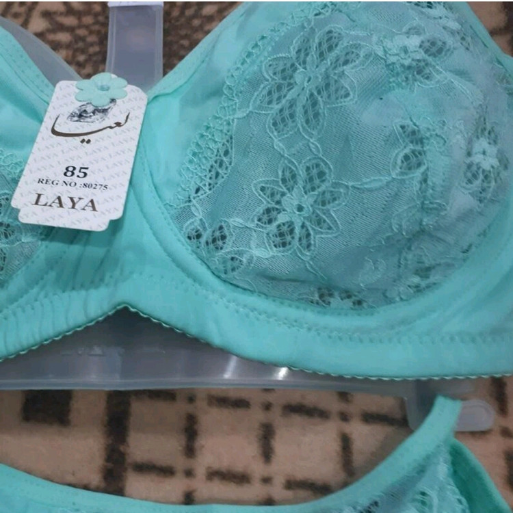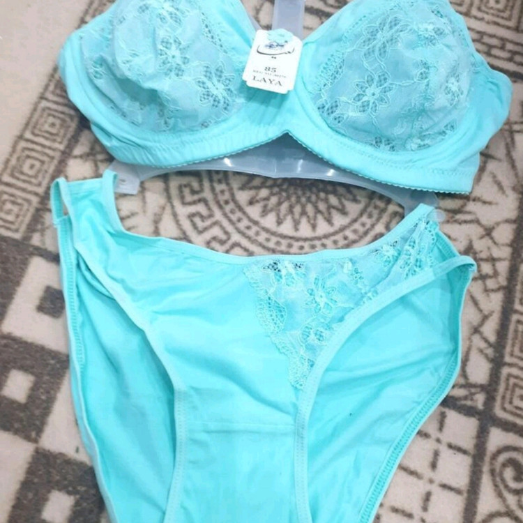 ست سوتین و شورت مارک لعیا دانتل دور نخی سایز 85 90 تک رنگ سبز آبی اصل کار روشن تر است