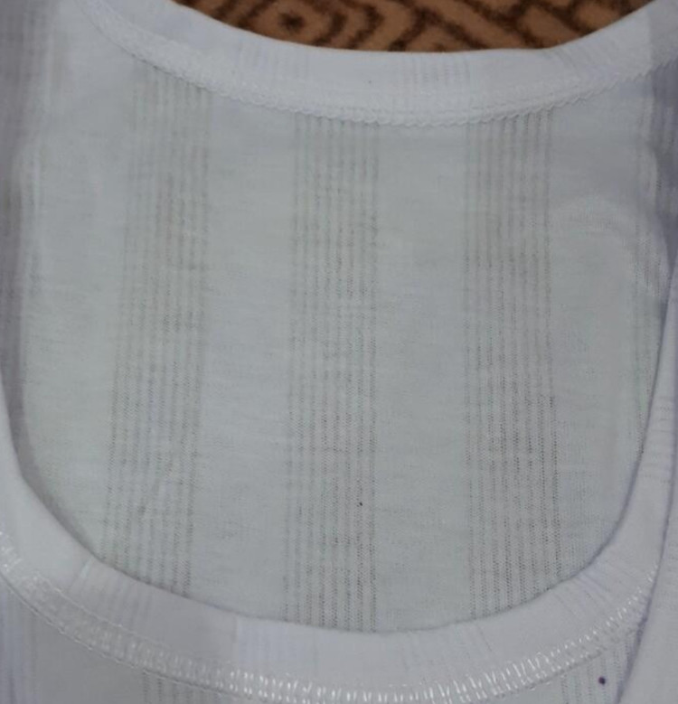 زیرپوش آستین دار کبریتی سفید سایز 44 یک طرف کمر بدون کشیدن نزدیک 44 سانت مناسب لارج