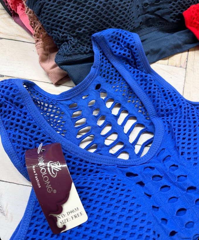 نیم تنه نخی کبریتی طرح قلاب بافی دارای پد متحرک فری سایز مناسب اندام نرمال