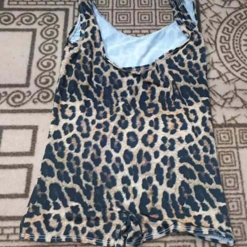 مایو پادار دخترانه سایز لارج مناسب سن 7 تا 10 سال نرمال فقط طرح پلنگی طوسی